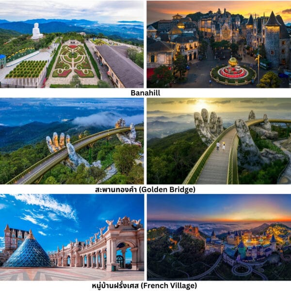เที่ยวชมความสวยงามของเวียดนามกลาง ดานัง ฮอยอัน นอนบานาฮิลล์ 3วัน 2คืน ขอพร องค์เจ้าแม่กวนอิม วัดหลินอึ้ง เขาบานาฮิลล์ สะพานมือสีทองคำ หมู่บ้านสไตล์ฝรั่งเศส สวนดอกไม้ สวนสนุกแฟนตาซี ปราสาทจันทรา สวนเอเปค สะพานมังกร สะพานแห่งความรัก ตลาดฮาน